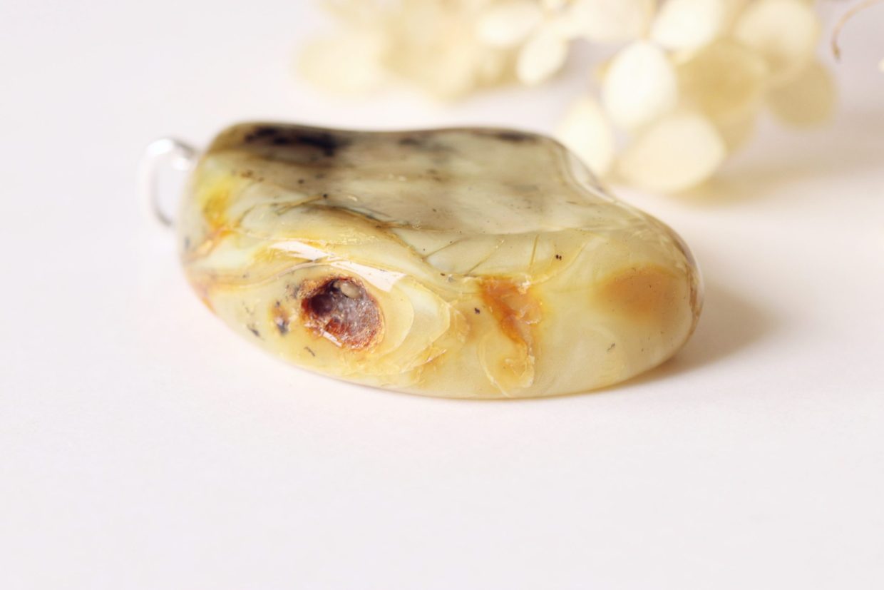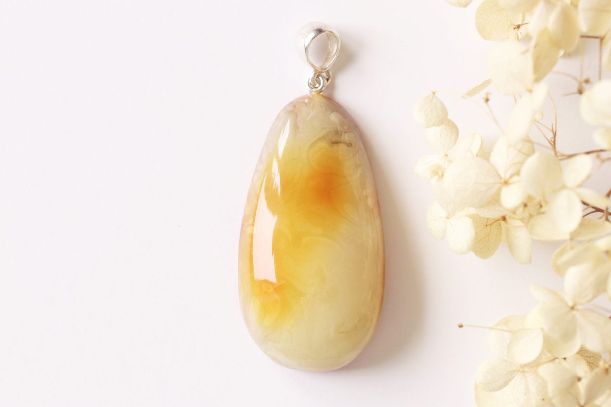 White/yellow color Baltic amber pendant P306