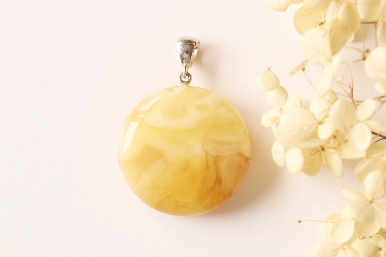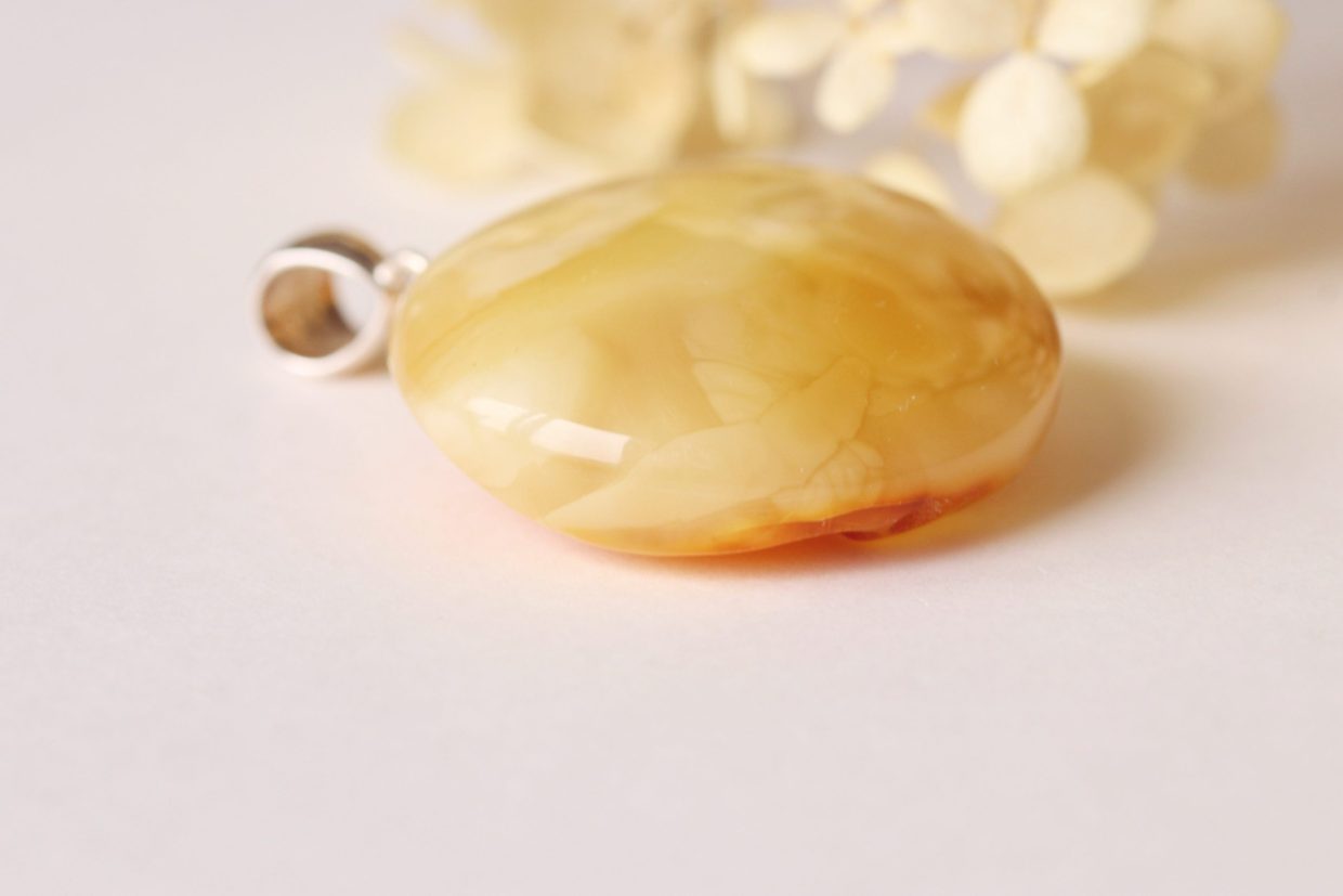 White/yellow color Baltic amber pendant P306