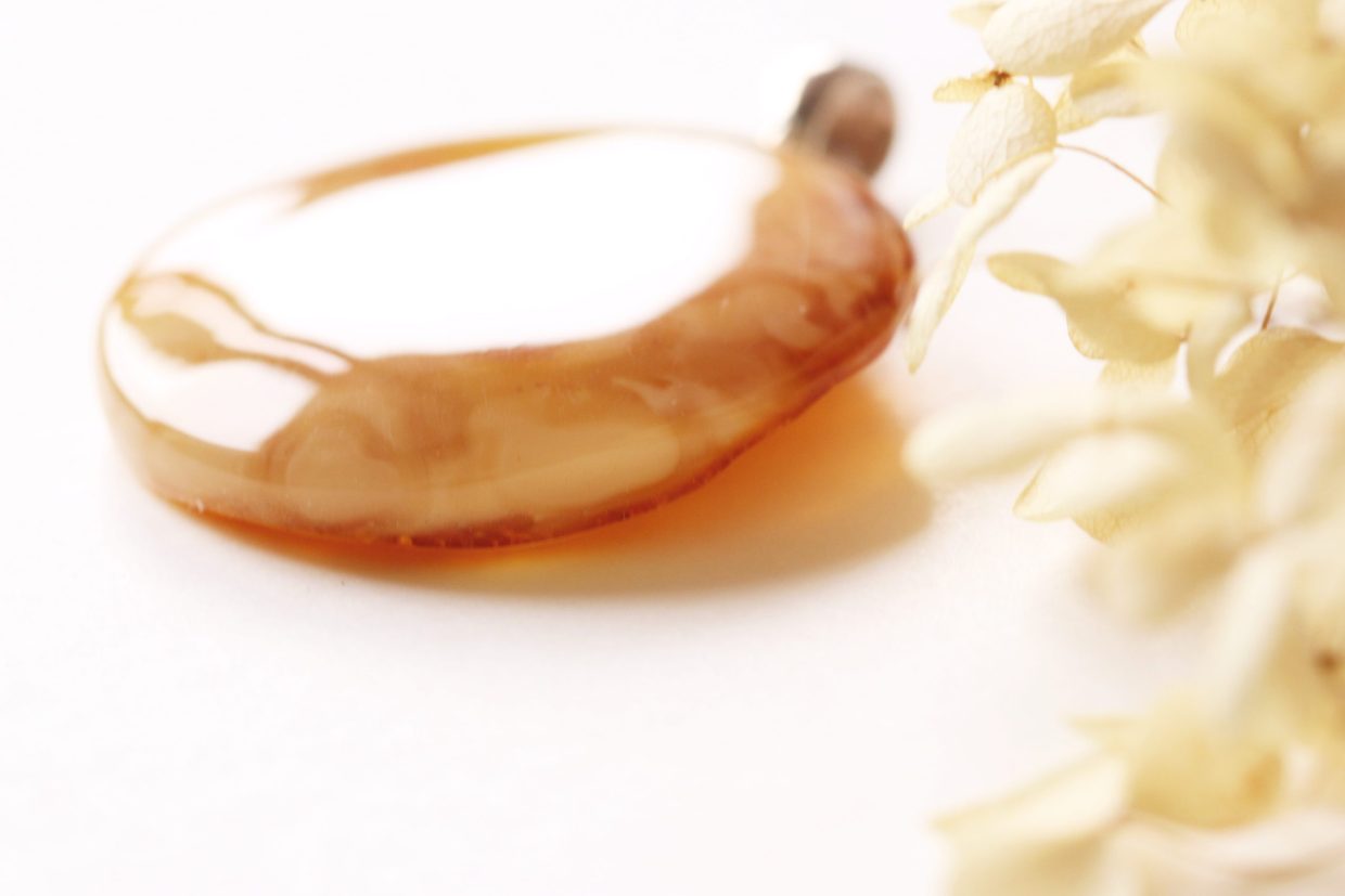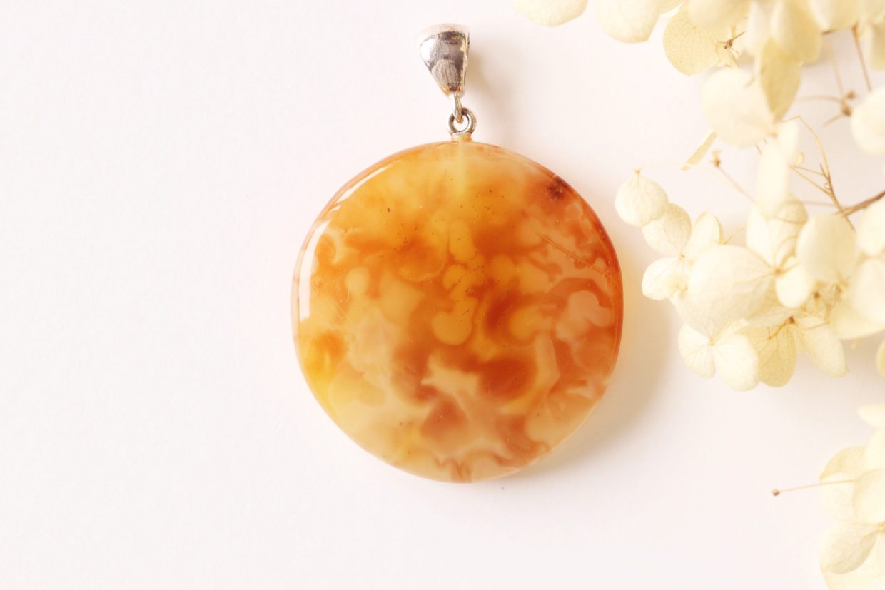 Unpolished yellow color natural Baltic amber pendant with leather N248