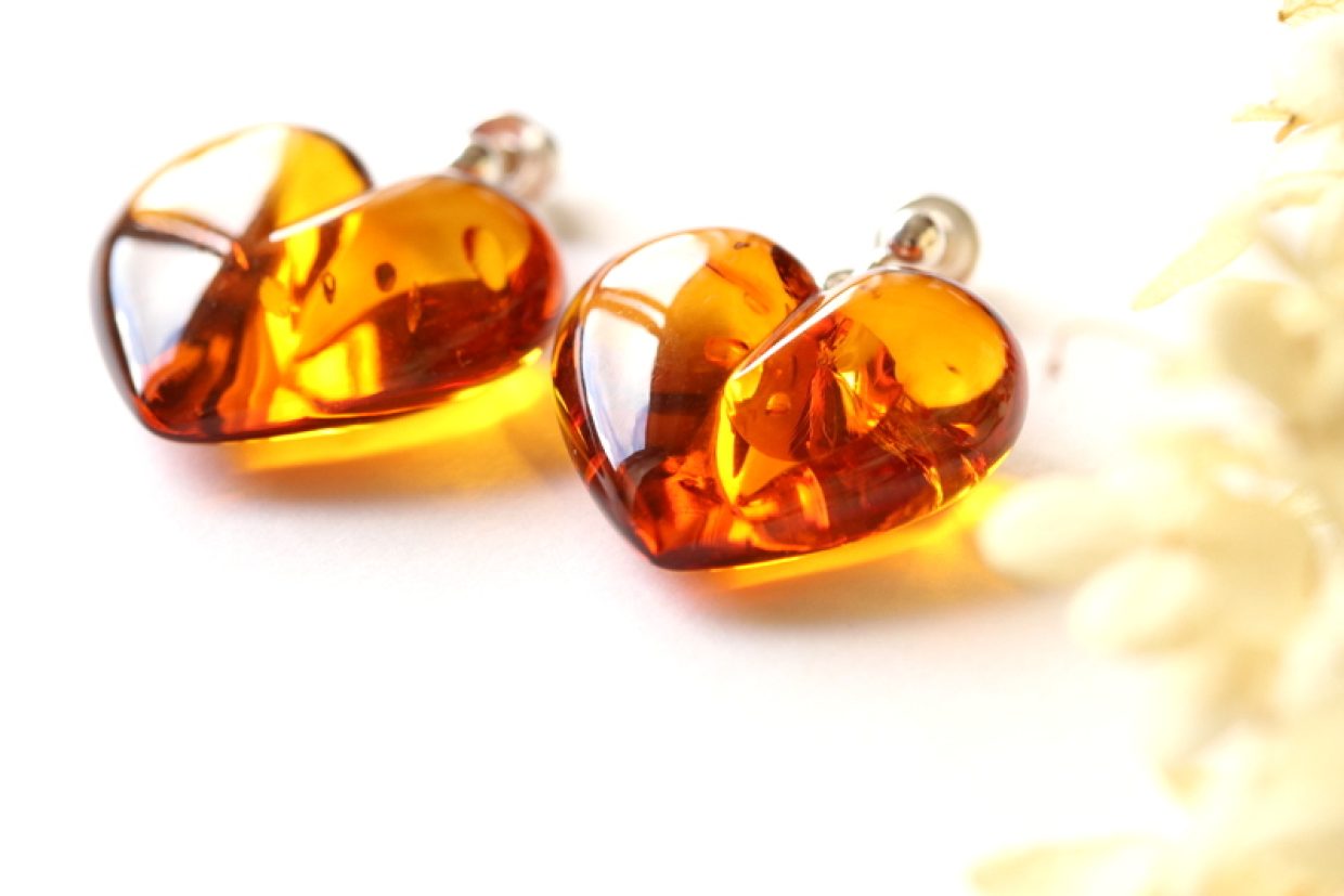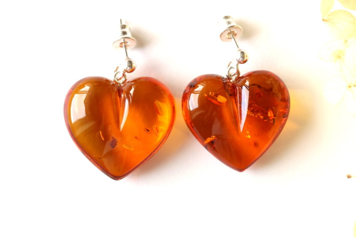 Heart shape amber earrings E311